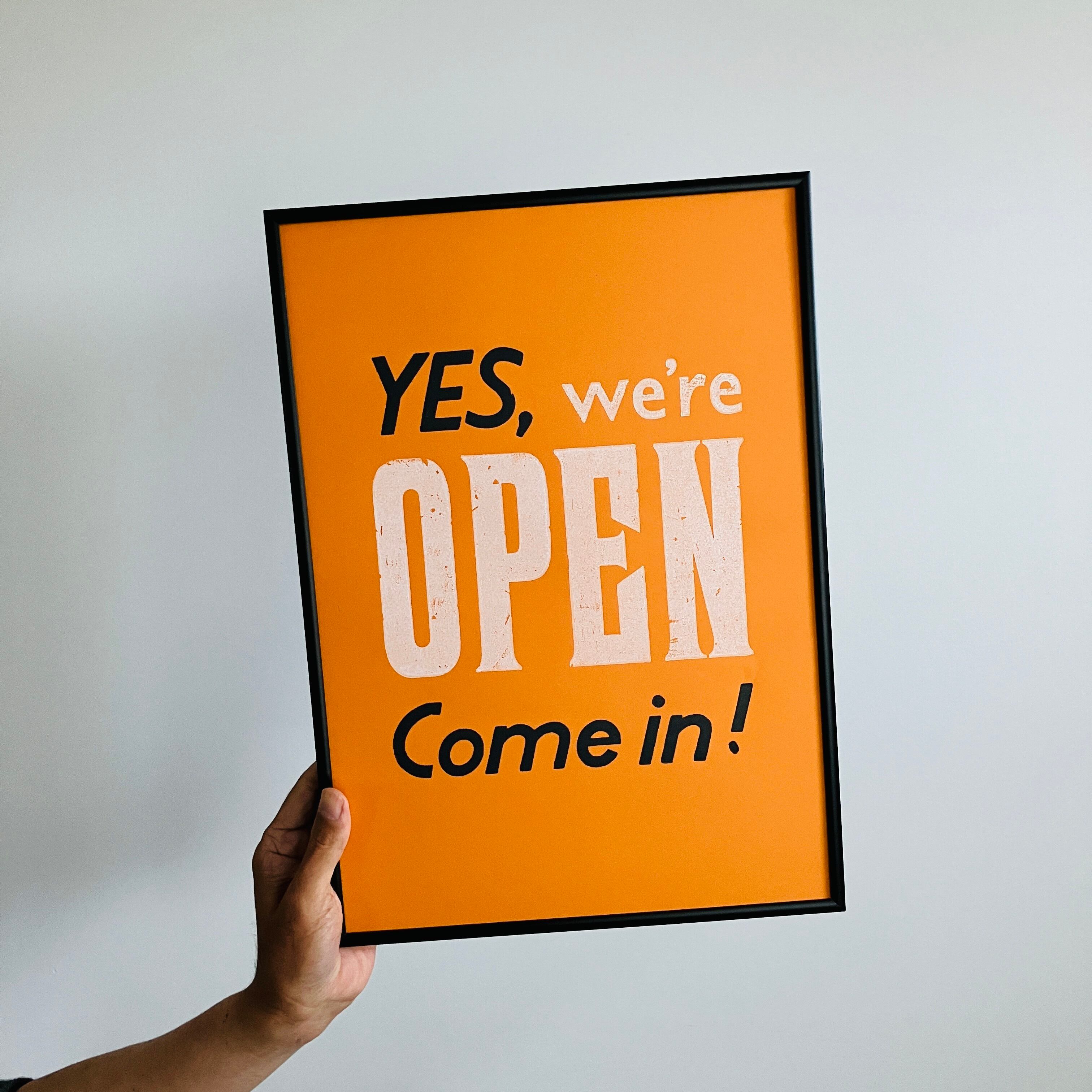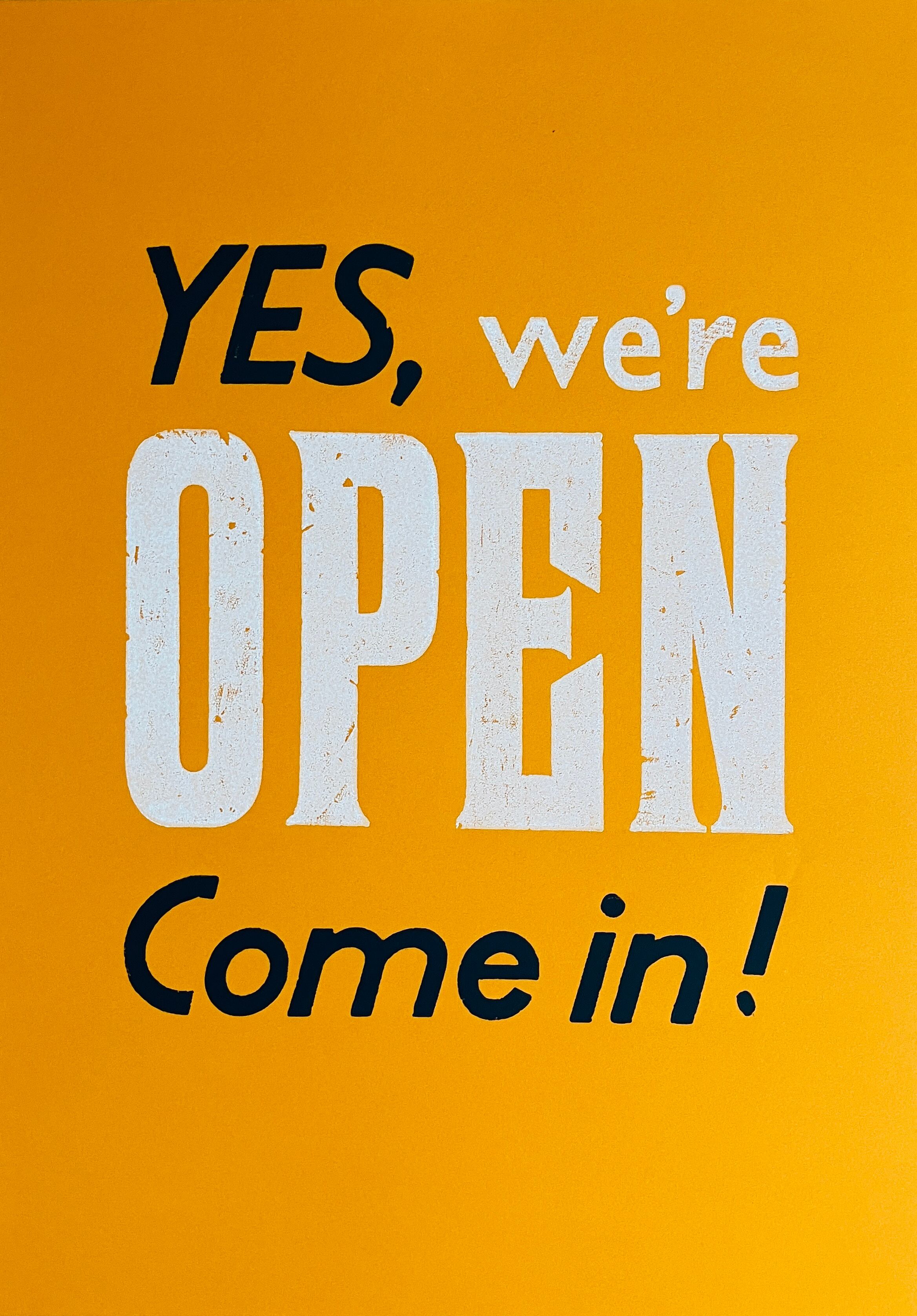 と活版印刷されたポスターはお店の看板、サインにもぴったりです。大きな「OPEN」の文字が遠くからでもお客様の目に留まること間違いなし!