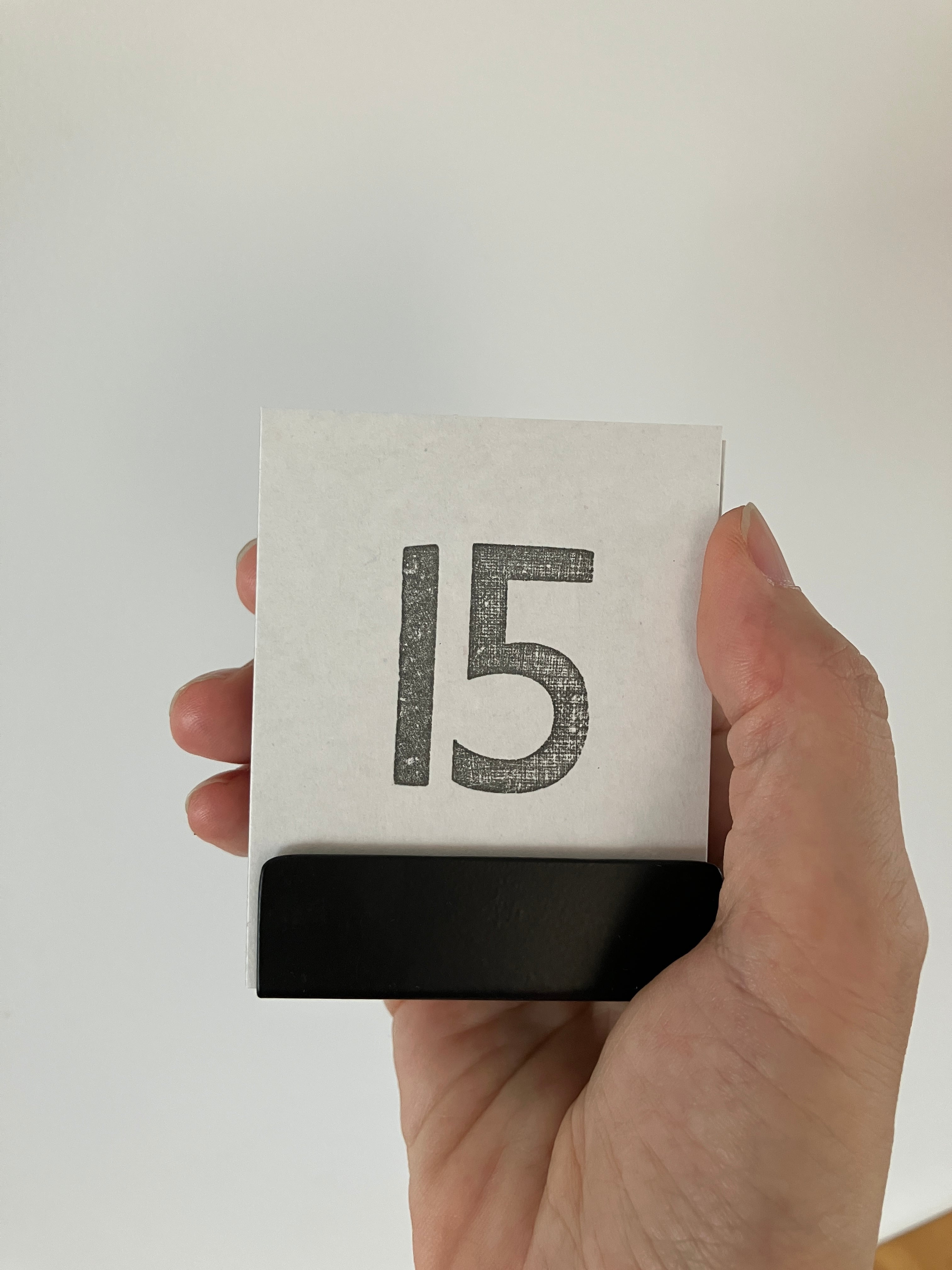 数字には「ギルサンズ」というフォントの木活字を使用しています。ギルサンズはイギリスでよく使用されるフォントで少しユーモラスでおっとりした雰囲気が魅力です。