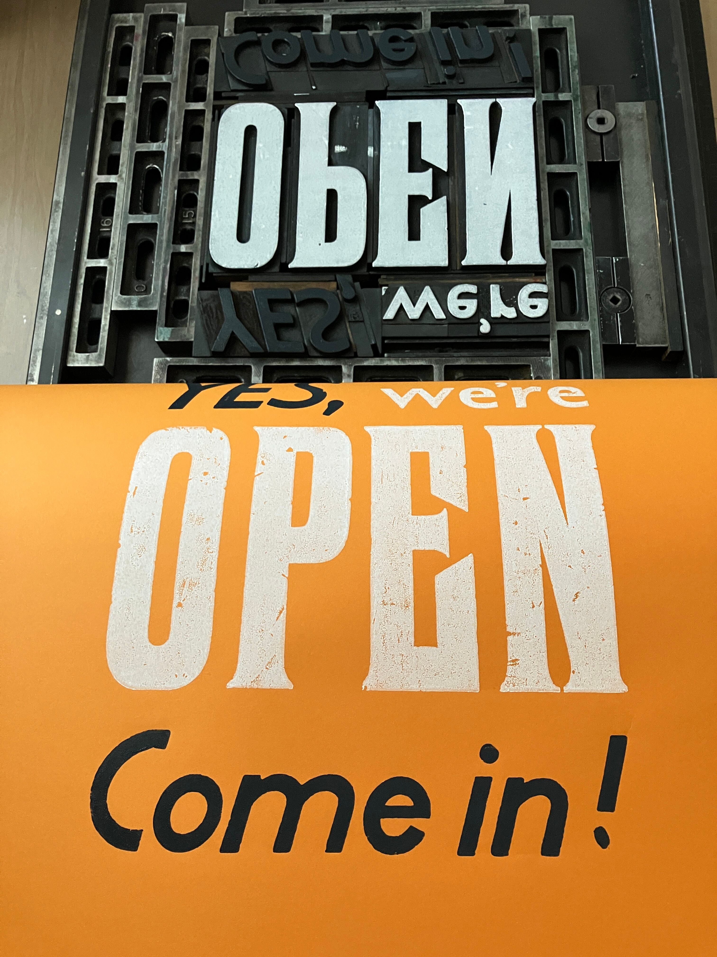 と活版印刷されたポスターはお店の看板、サインにもぴったりです。大きな「OPEN」の文字が遠くからでもお客様の目に留まること間違いなし!お店を華やかに演出してくれるポスターです。