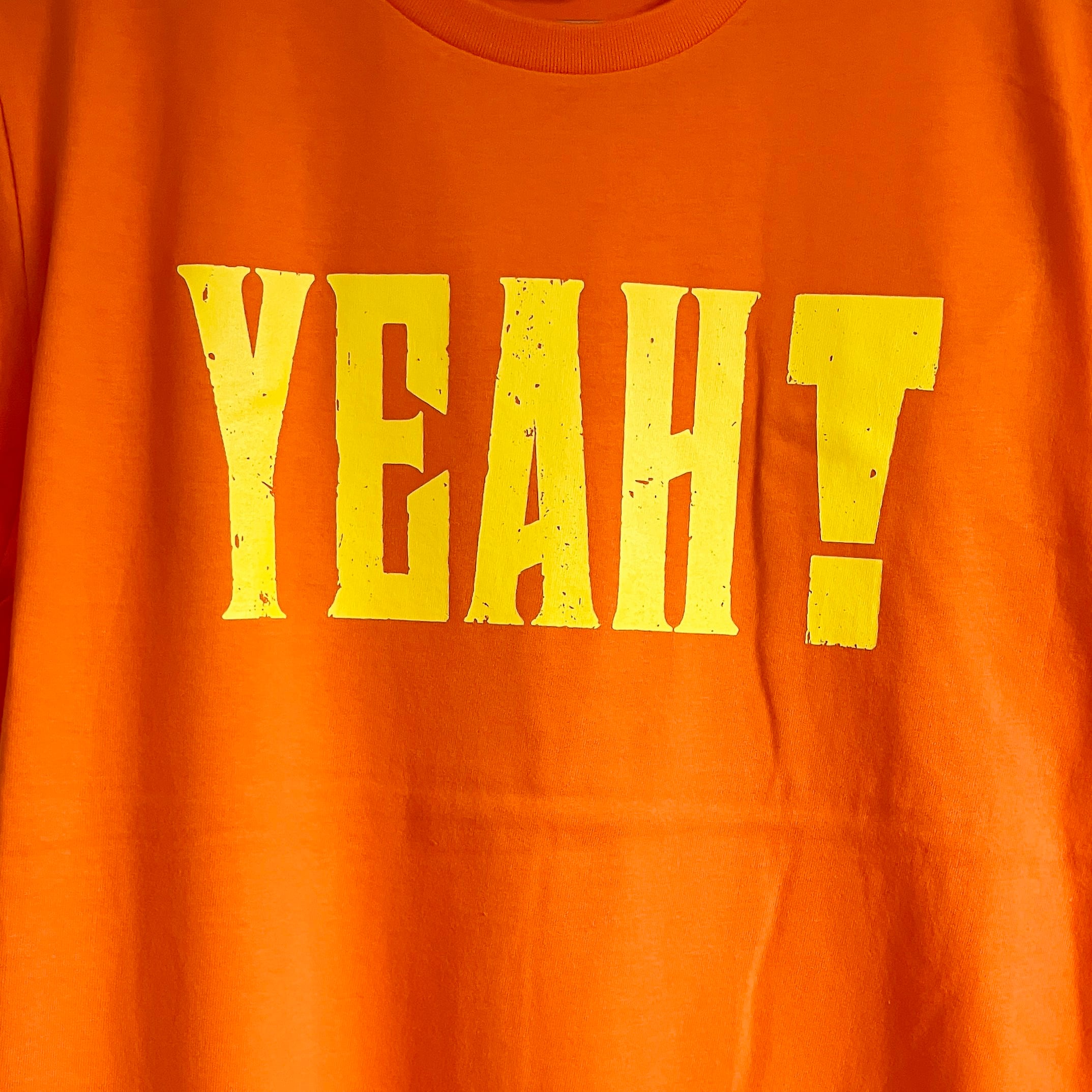 鮮やかなイエローで大きくプリントされた「YEAH!」の文字はシンプルながらも存在感抜群。