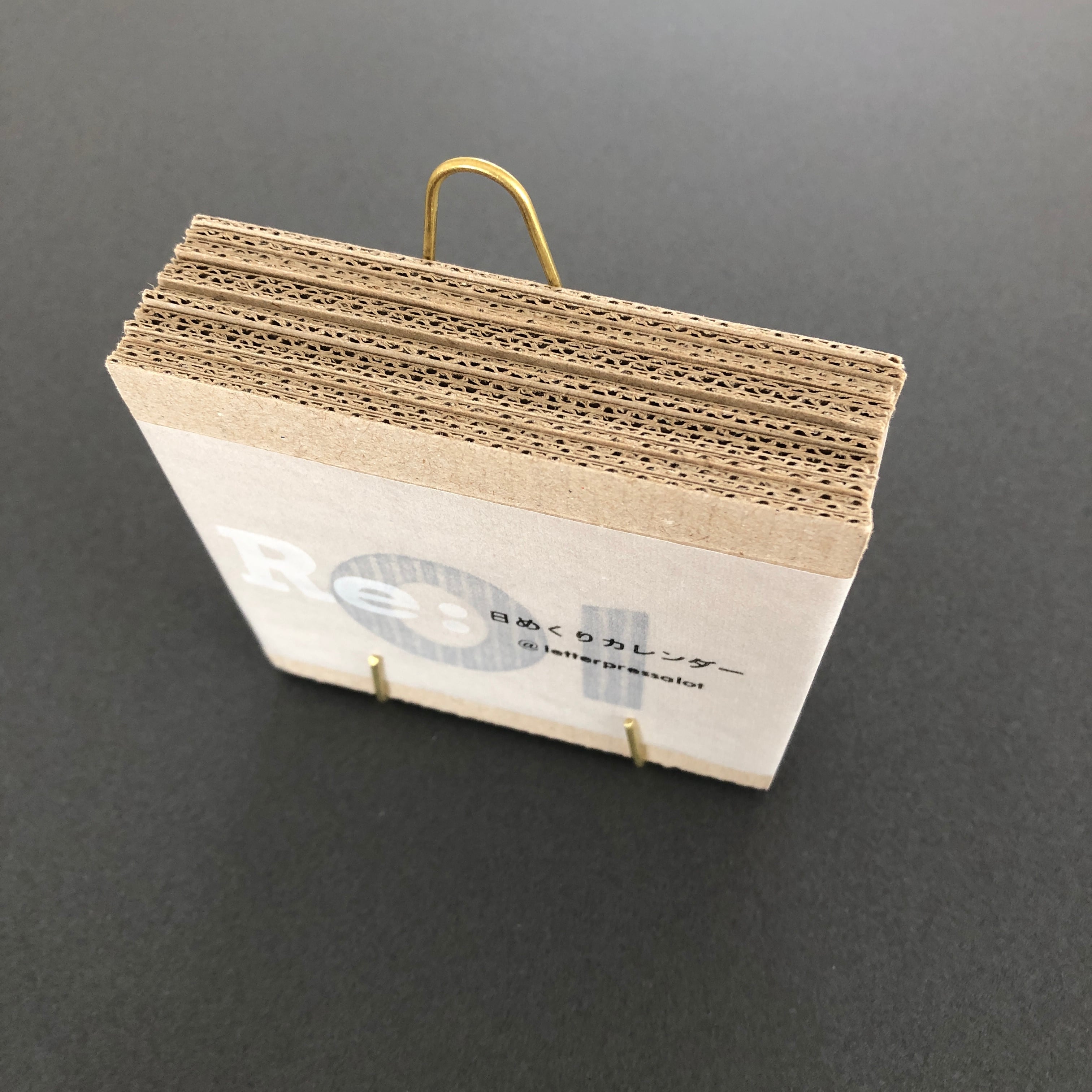 風合いのある段ボール紙に数字を活版印刷した「日めくRe:カレンダー」です。