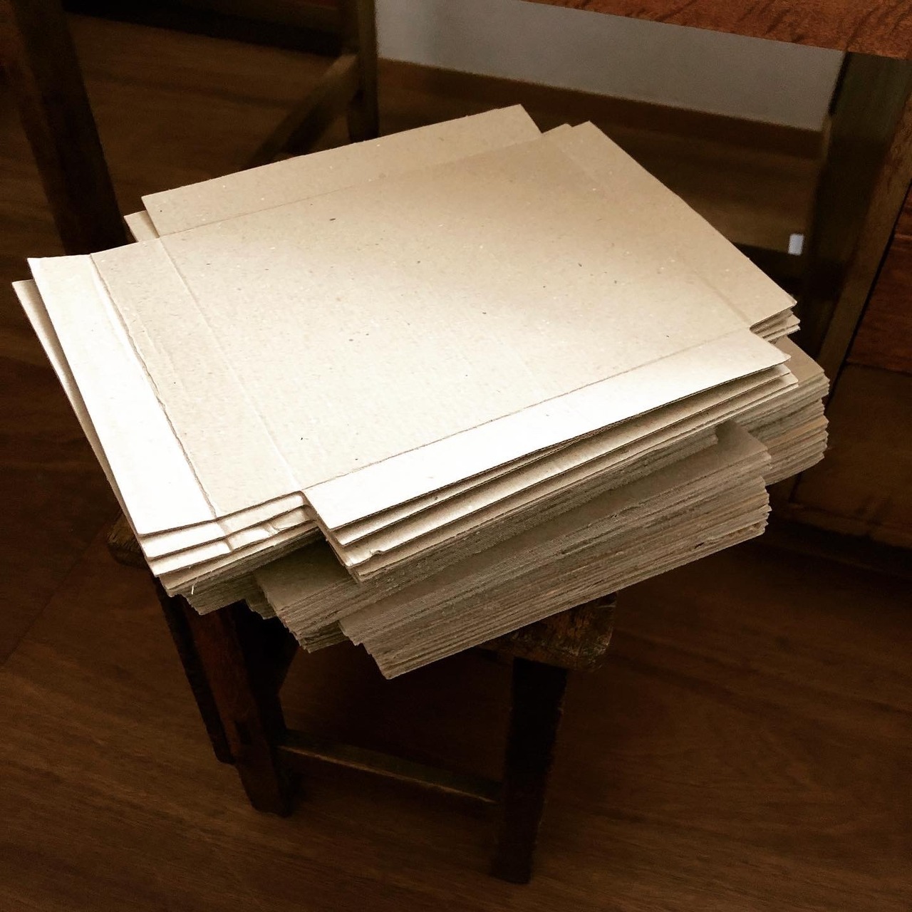 本屋さんで不要になった段ボールから状態の良いものを選び、手作業で断裁し、木活字を使って1〜31の数字を活版印刷した日めくりカレンダーです。一枚一枚手刷りしています。