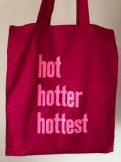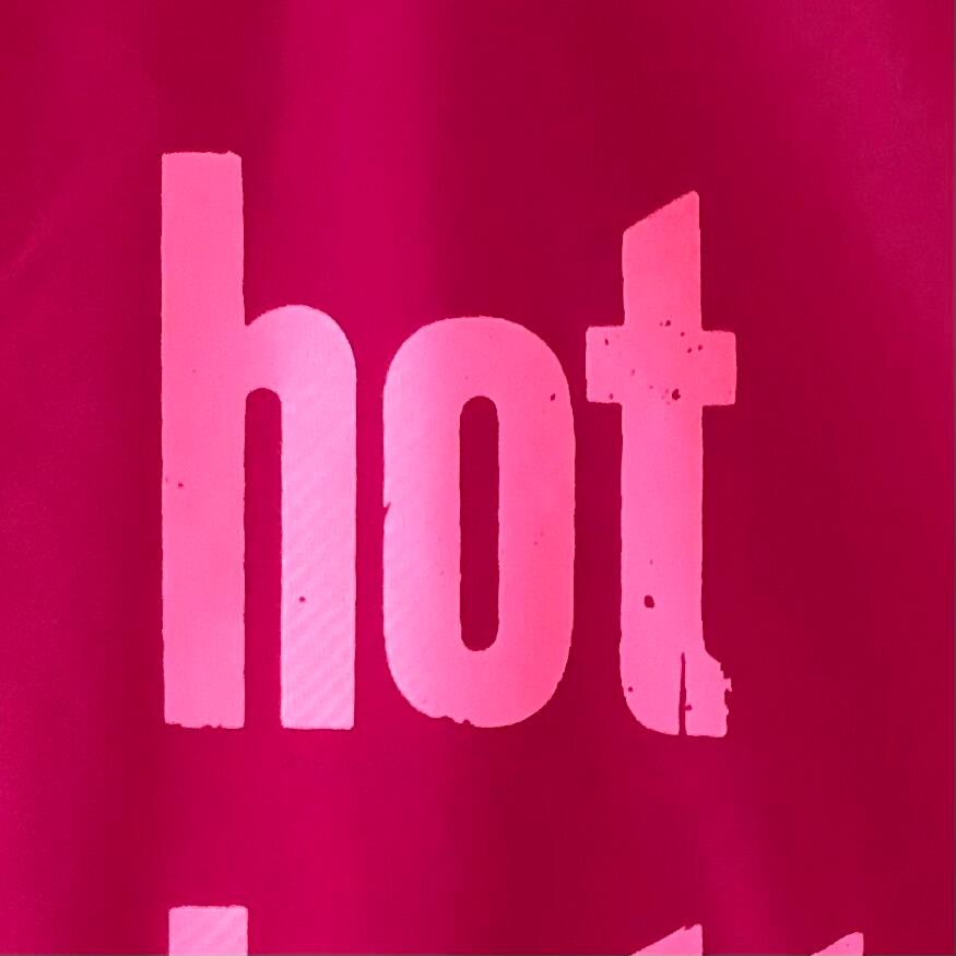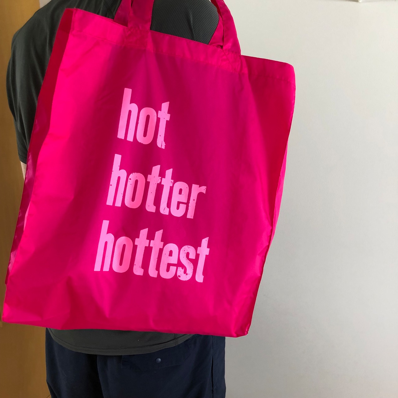 こちらの色はホットピンクのバッグに、蛍光ピンクのインクというalotこだわりの同系色の組み合わせ。バッグよりも一段階明るいピンクのhothotterhottestの文字が優しい印象です。