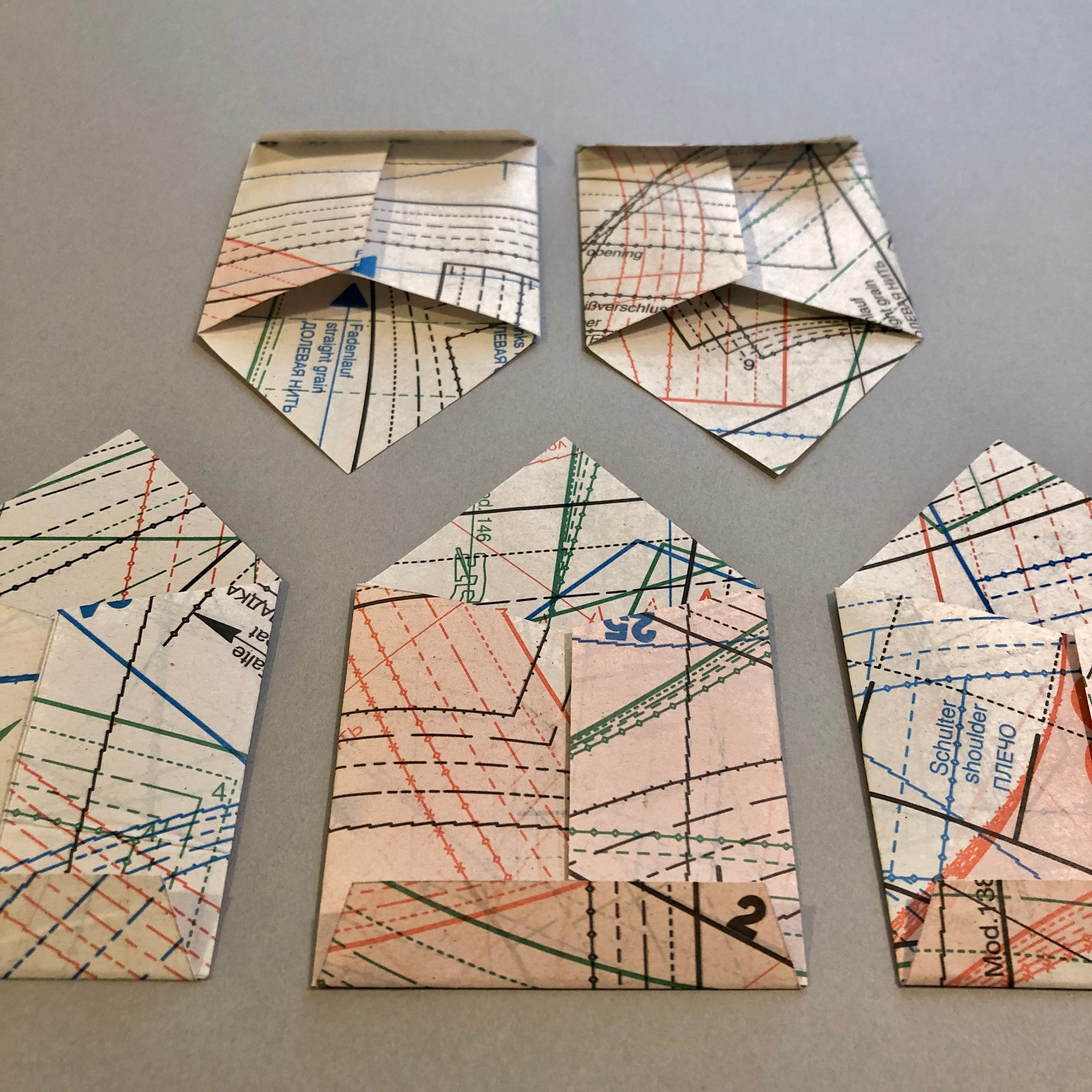 作り方は簡単。型紙をポチ袋にしたい紙にのせて線を引く→カットする→折って糊づけすれば完成です。折り見本と作り方も同封されています。